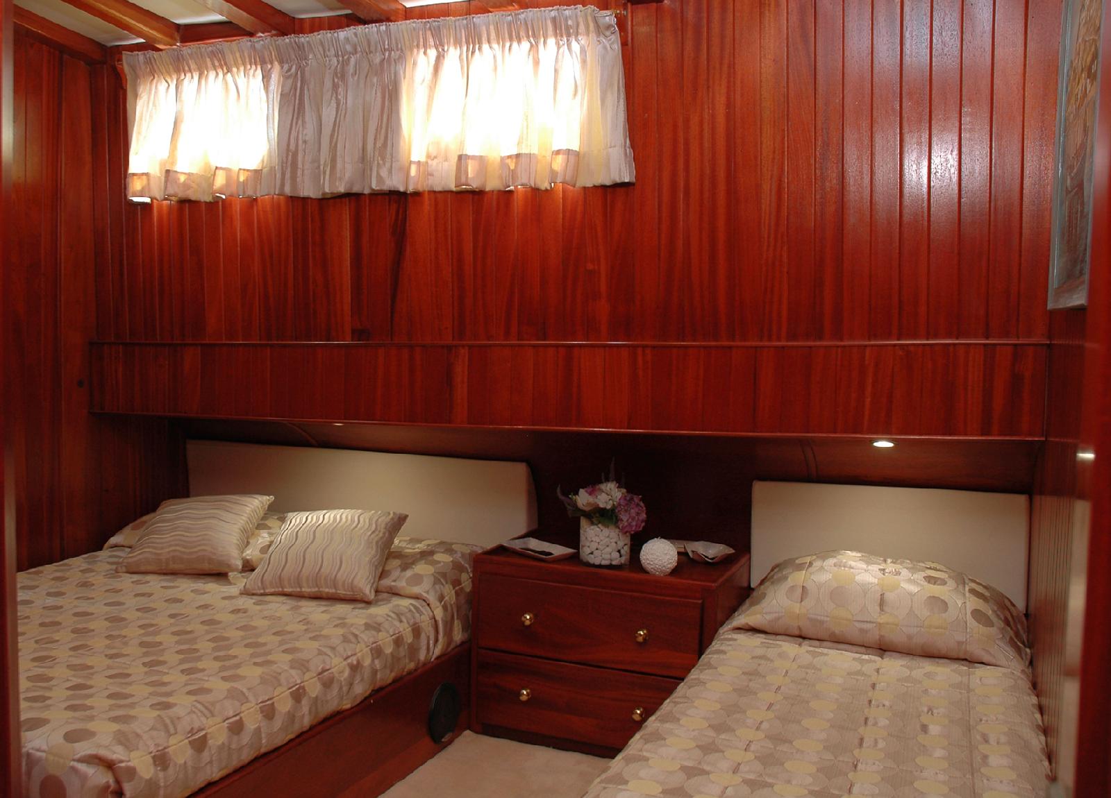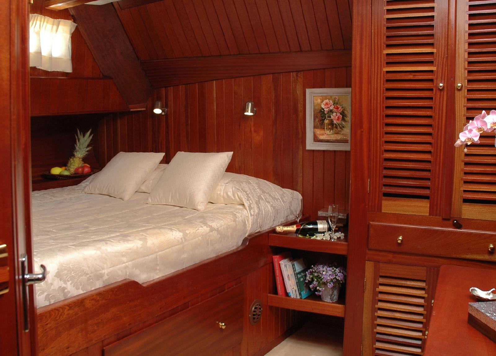 The 8 cozy cabins can accommodate up to 20 guests overnight and up to 25 guests can be on board during the day.