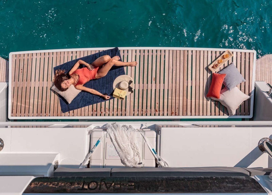 The layout is perfect for accommodating five couples in a master cabin and four double cabins. The catamaran also offers plenty of outdoor space to enjoy the summer to the full. The crew of three takes excellent care of the guests during their stay.