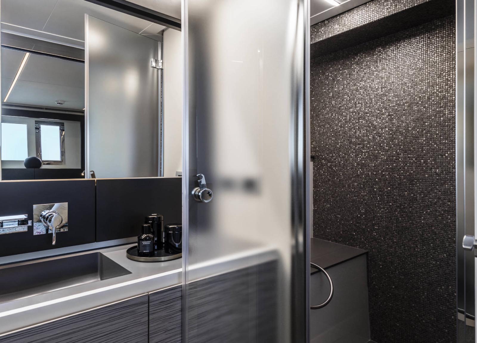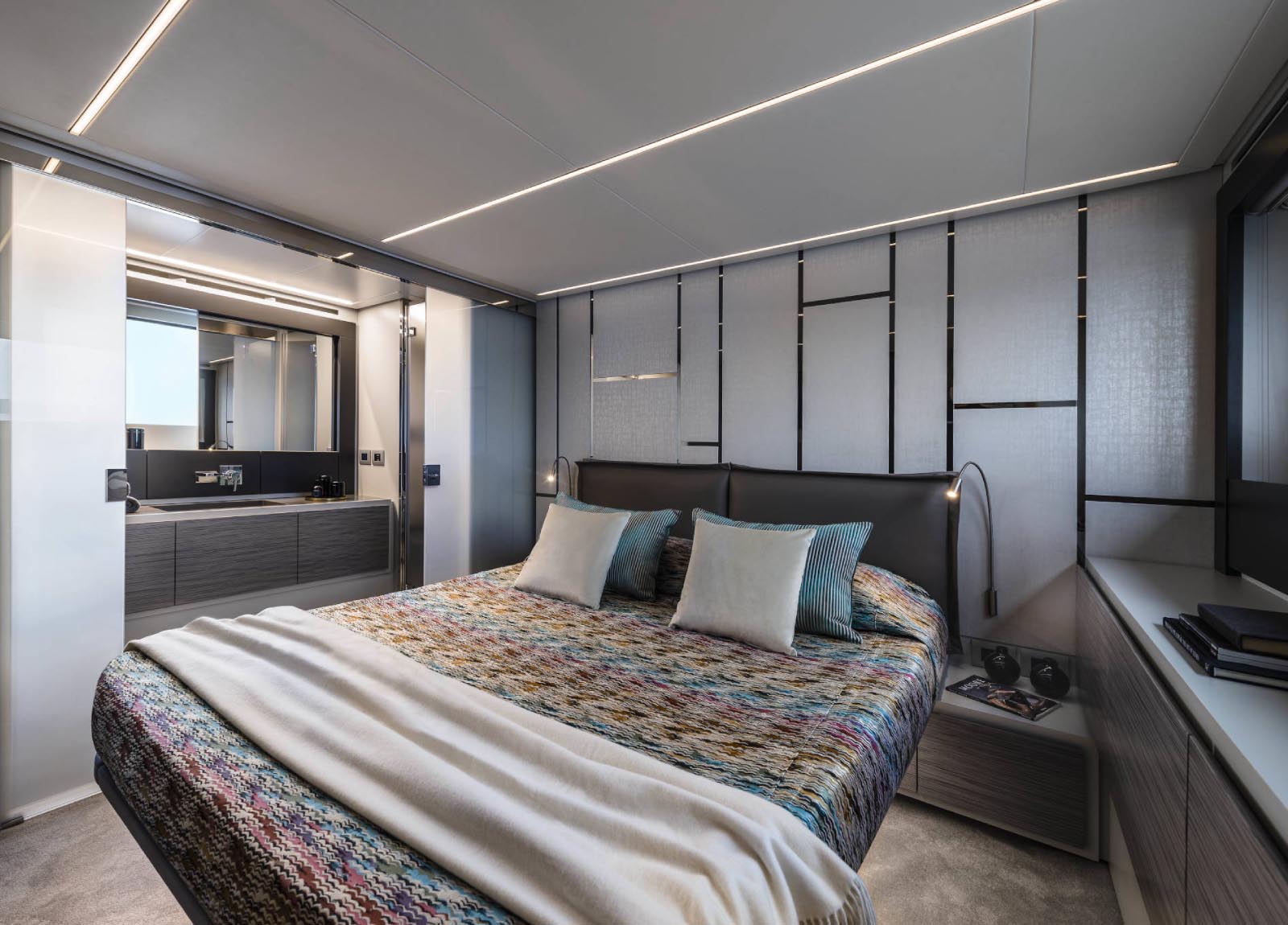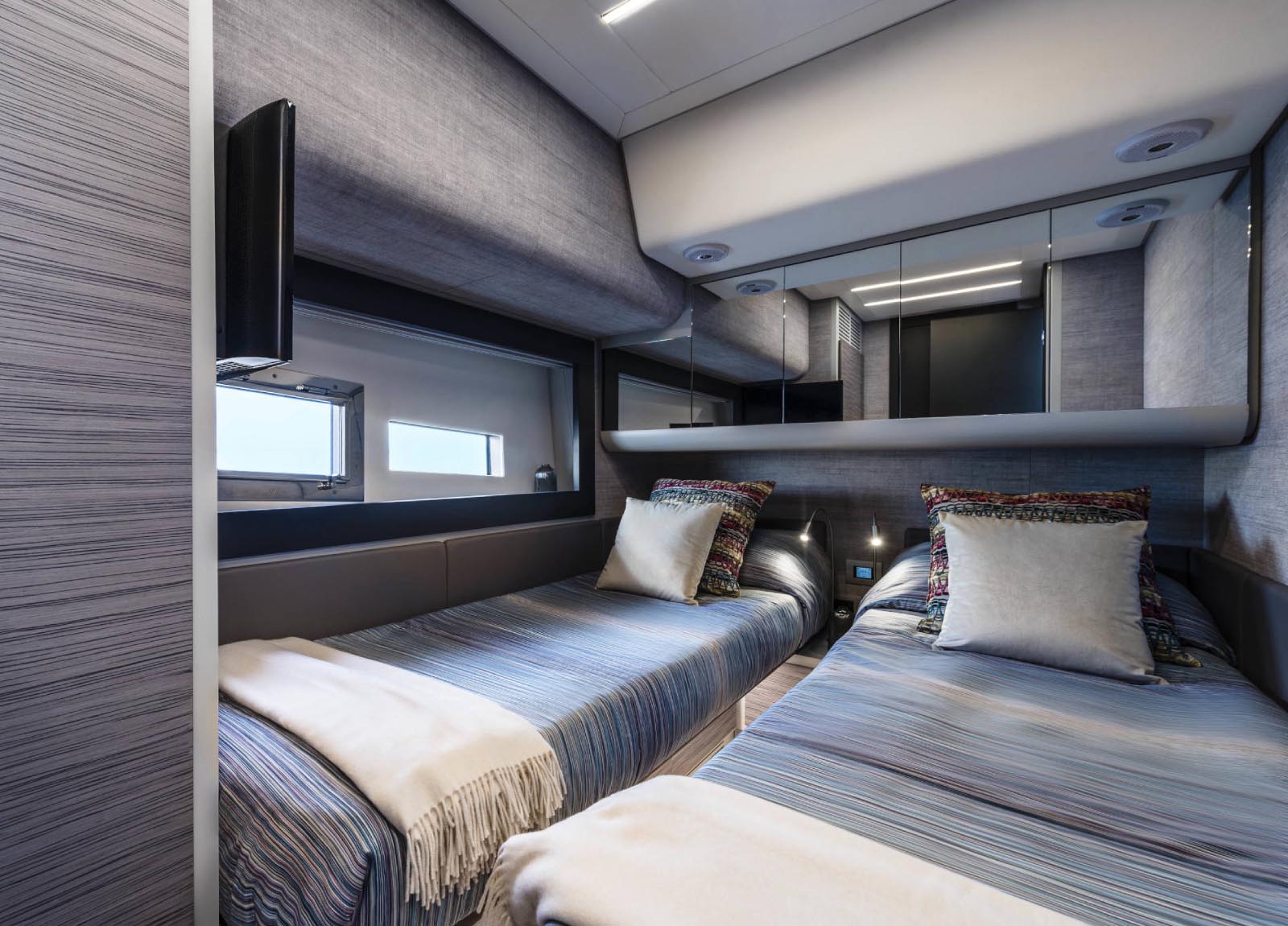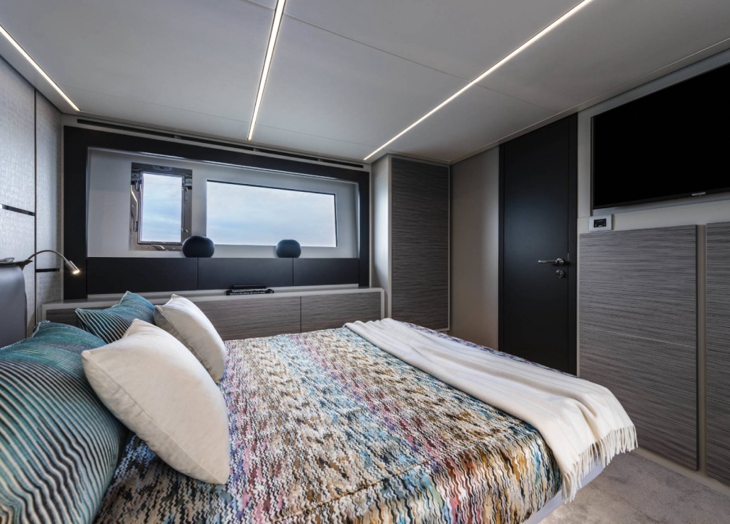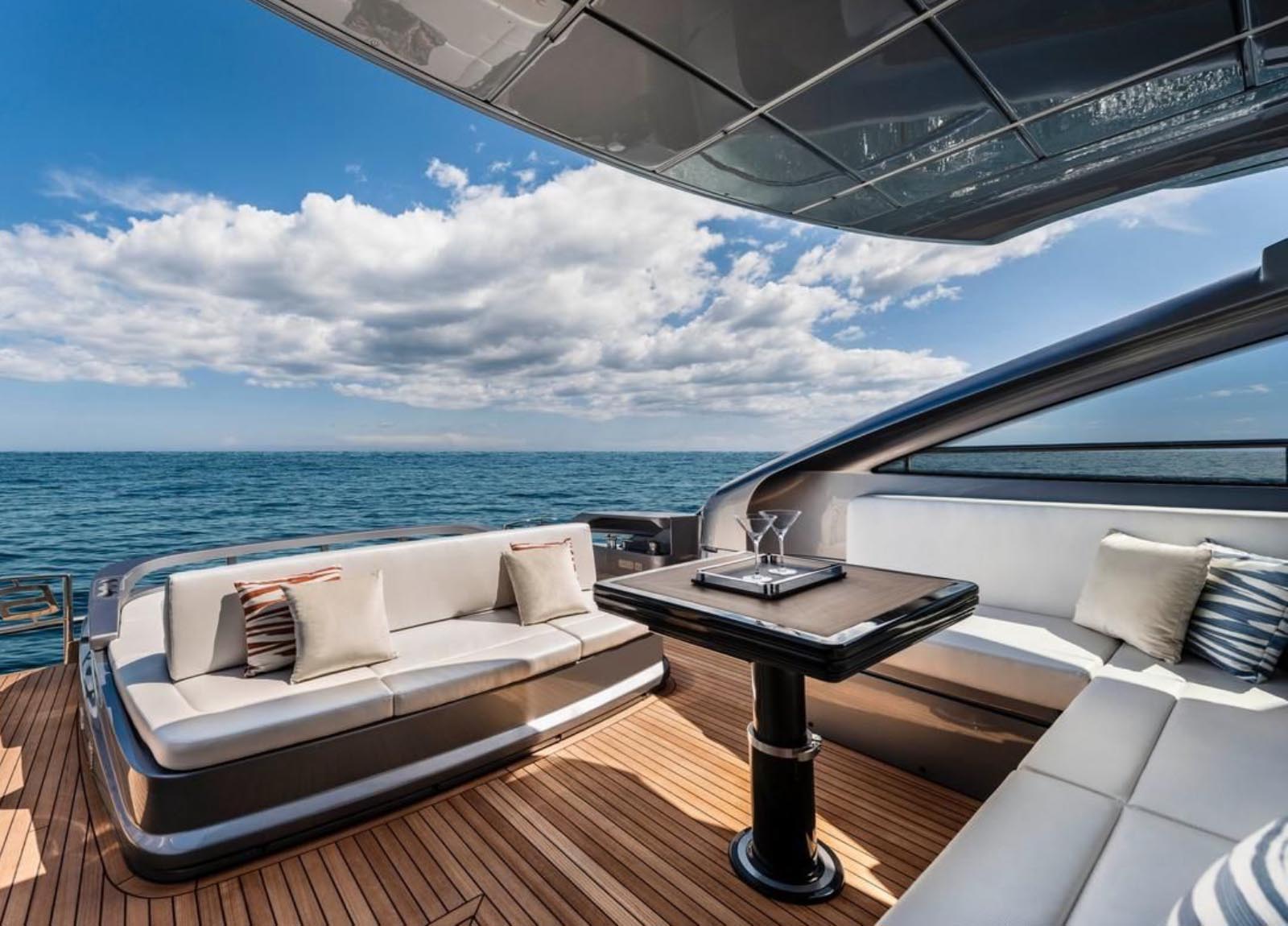 The brand new and damn stylish Perhsing 6X "Saints" is ready for exciting water adventures in the western Mediterranean from her home port in Italy. Between the islands, the yacht's speed will take your breath away. The sporty motor yacht guarantees a high level of comfort at sea and at anchor thanks to its stabilization systems. Her spacious hydraulic bathing platform is the perfect starting point for water sports activities. Saints has two guest cabins for four people, both with en-suite bathrooms and state-of-the-art multimedia systems. A crew of two, consisting of captain/cook and stewardess, is available to guests to ensure a seamless stay at sea.