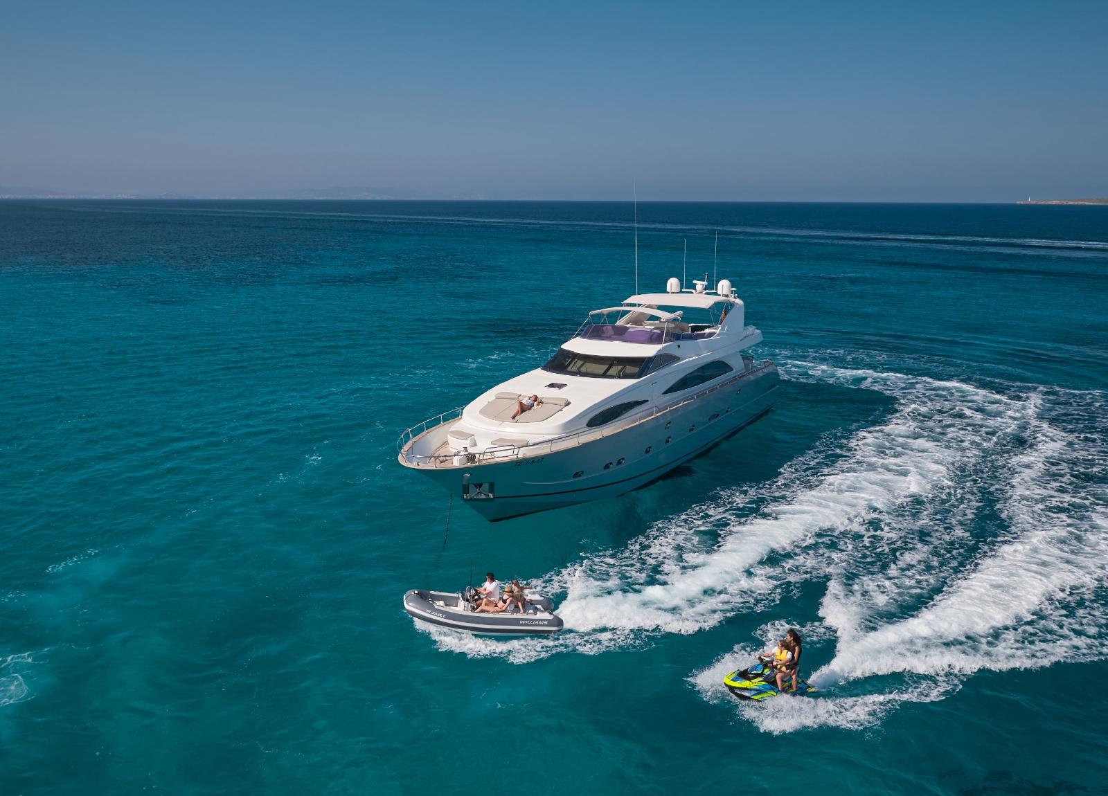 Neben Entspannung und Entschleunigung lädt die luxuriöse „Kiawah II“ ein, sich im Wassersport auszuprobieren und zum Beispiel auf dem Jetski oder mit dem Wakeboard Action und Spaß zu erleben und sportlich aktiv zu sein.