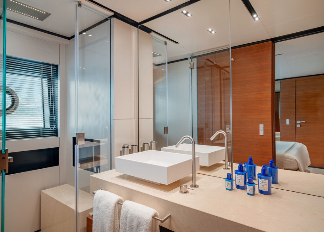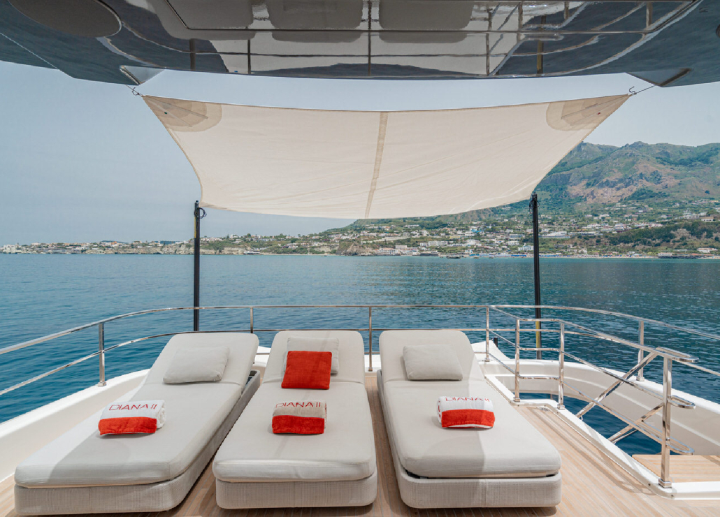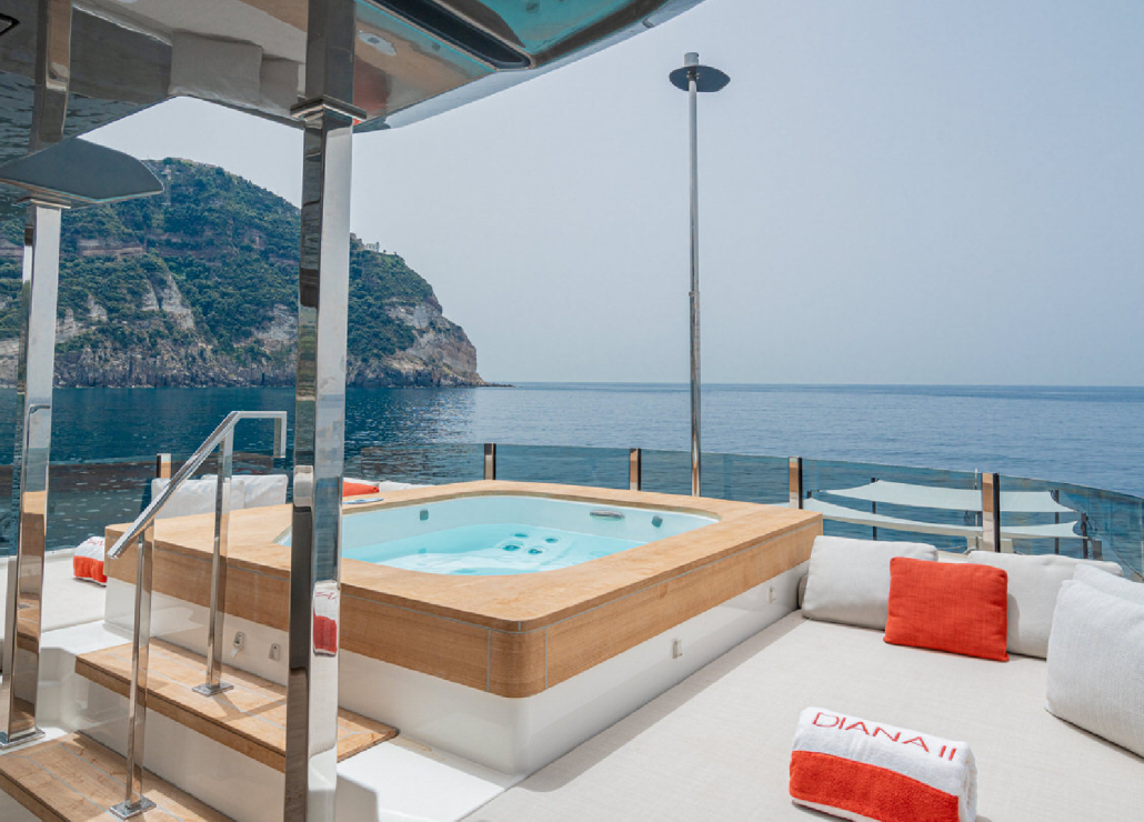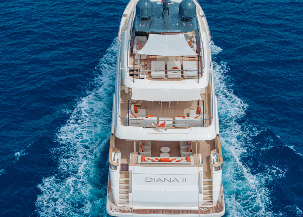 Die Custom Line Navetta 33 DIANA II kombiniert elegantes Design mit erstklassiger Stabilität auf dem Wasser. Sie bietet Platz für bis zu 11 Gäste in 5 luxuriösen en-suite Kabinen.
