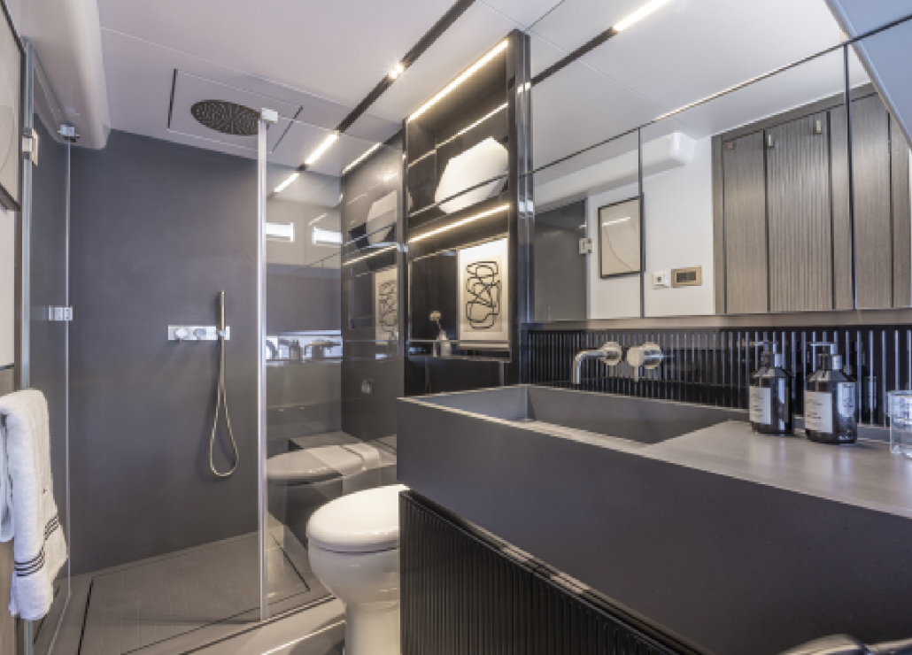Genießen Sie einen luxuriösen Charter mit Klimaanlage, hydraulischen Strahlrudern und Seakeeper-Stabilisatoren.