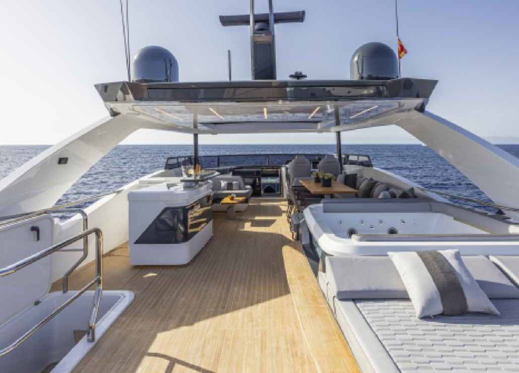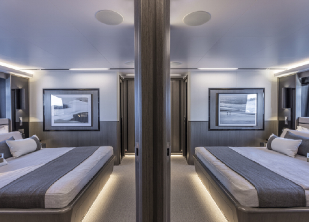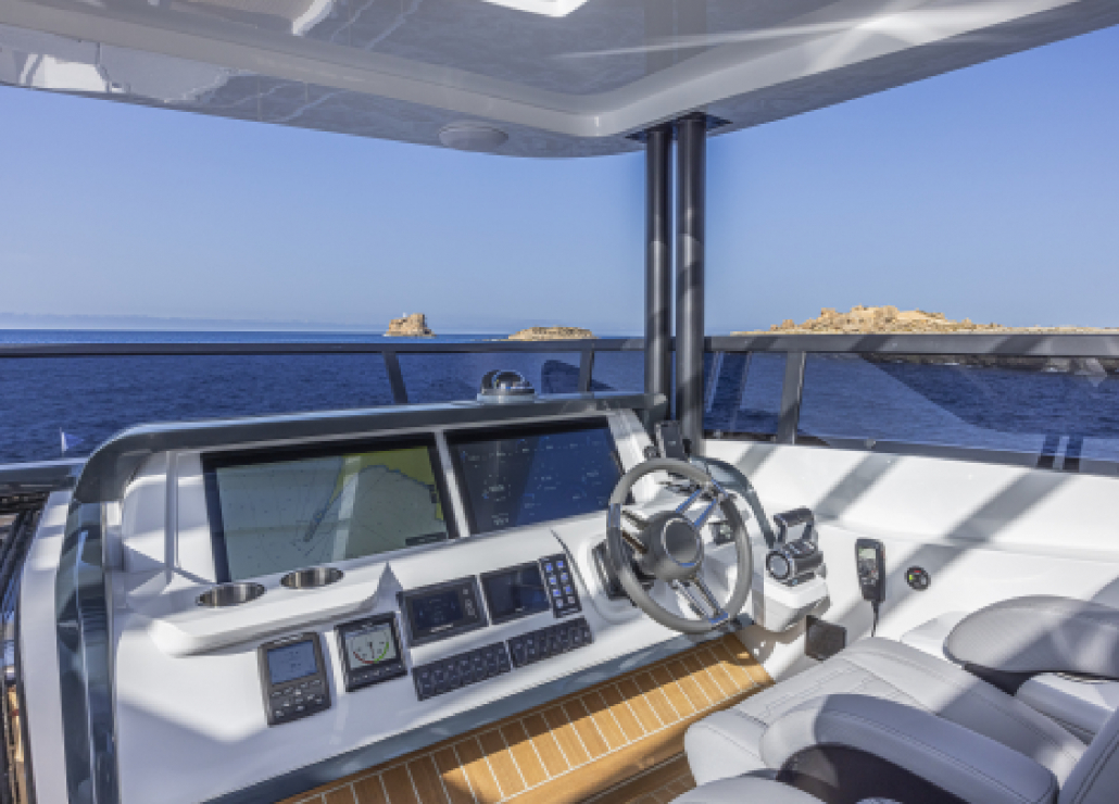 Diese wunderschöne Pearl 82 ist 25,3 Meter lang und bietet Platz für 10 Gäste in 5 komfortablen en-suite Kabinen. Die Eignerkabine im hat einen zusätzlichen direkten Ausgang auf den Bug -und von dort auch direkt auf die großzügig ausgelegte Flybridge.