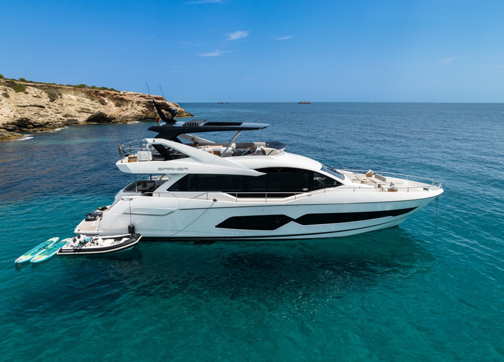 SAAHSA, eine 24-Meter-Luxusyacht, die von Sunseeker im Jahr 2021 auf den Markt gebracht wird, bietet ein komfortables und wahrhaft genussvolles Erlebnis für Gäste. Mit einer professionellen Crew von 3 Personen bietet sie Platz für bis zu 8 Gäste in 4 komfortablen Kabinen, darunter ein Master, zwei VIPs und ein umwandelbarer Twin-Kabine, die alle mit TV-Unterhaltung ausgestattet sind.