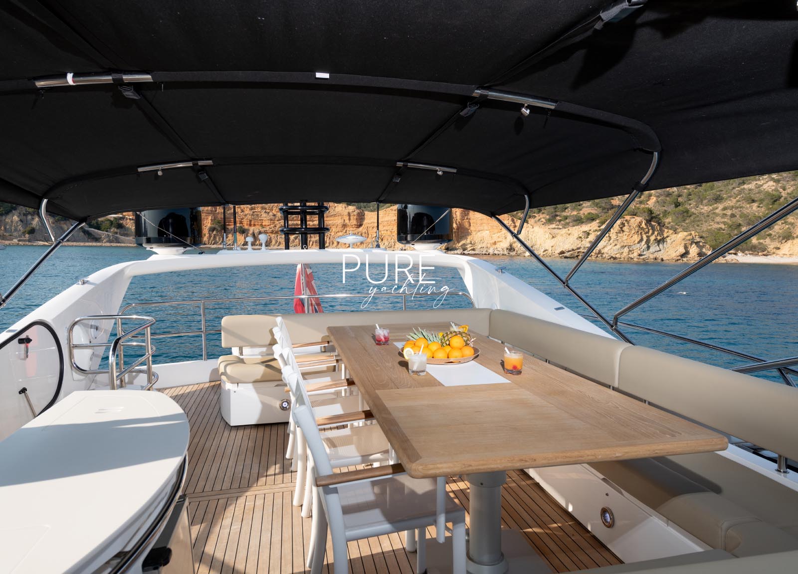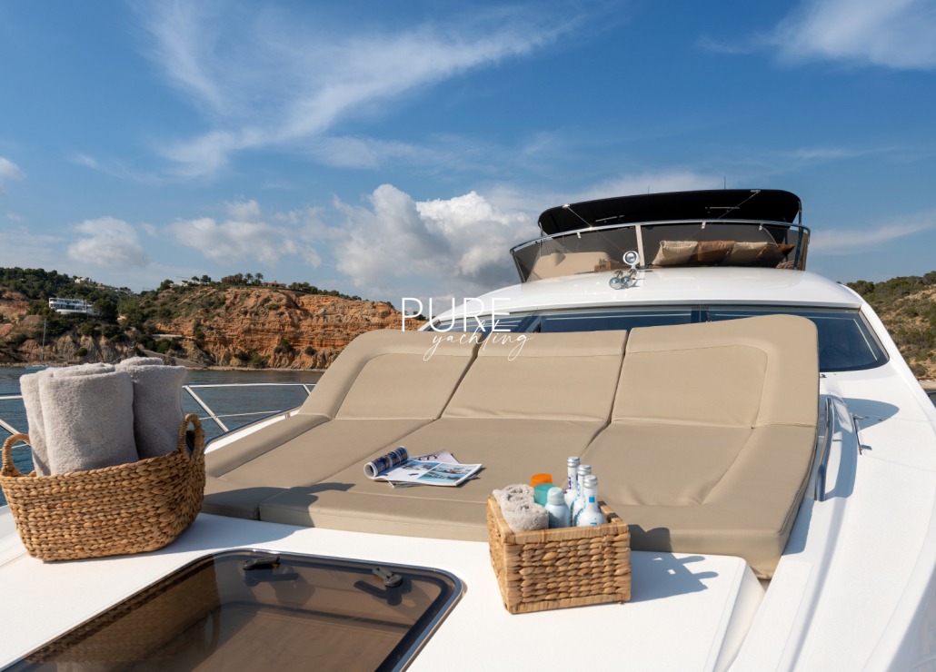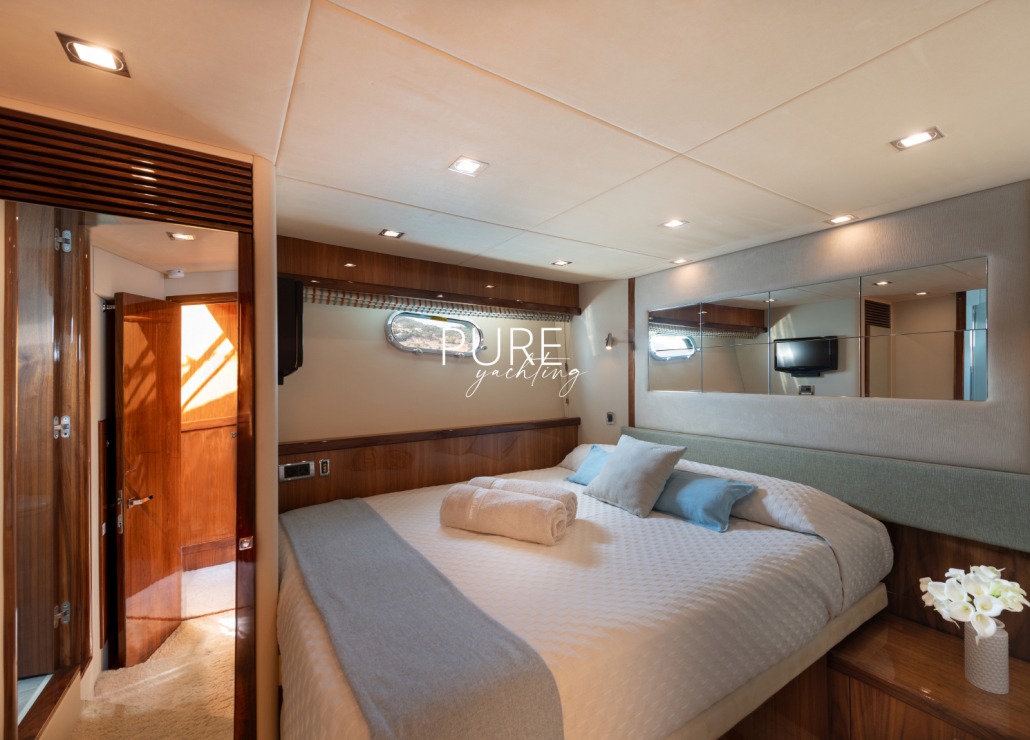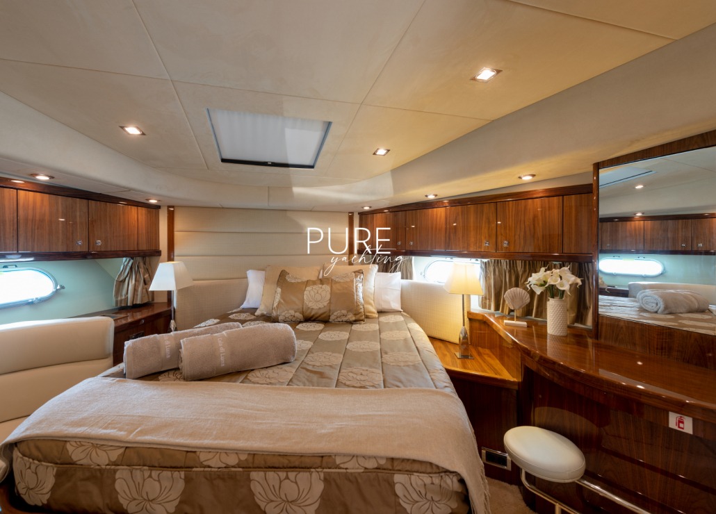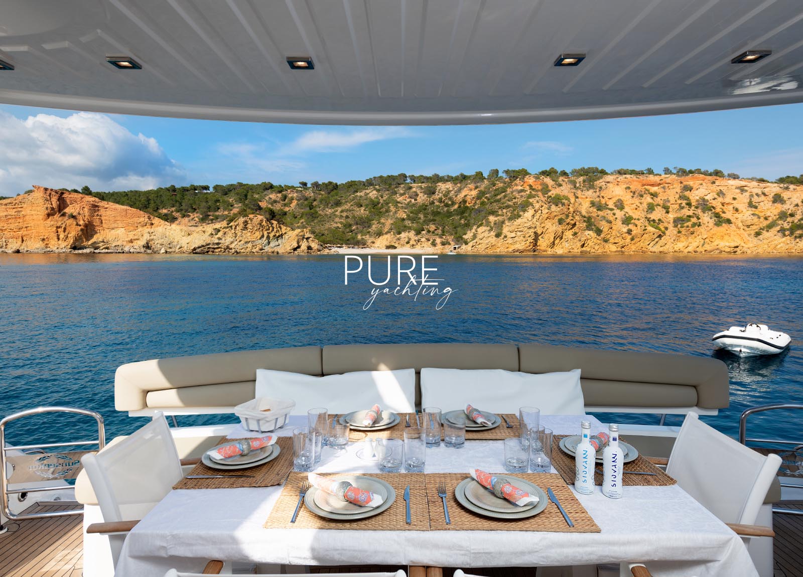 Die Manhattan 70 „Cala Di Luna“ ist wohl eine der vielseitigsten Charteryachten auf den Balearen, dank der perfekten Fusion aus Geschwindigkeit, Komfort und Ausstattung. Die 22,3 m Sunseeker-Yacht aus dem Jahr 2010 wurde 2018 komplett überholt. Sie verfügt über 4 Kabinen mit Schlafmöglichkeiten für 8 Gäste und kann tagsüber bis zu 12 Gäste aufnehmen. Die Manhattan 70 verfügt über eine umfangreiche technische Ausstattung wie das Stabilisierungssystem und die hydraulische Badeplattform sowie eine Vielzahl von Wasserspielzeugen.