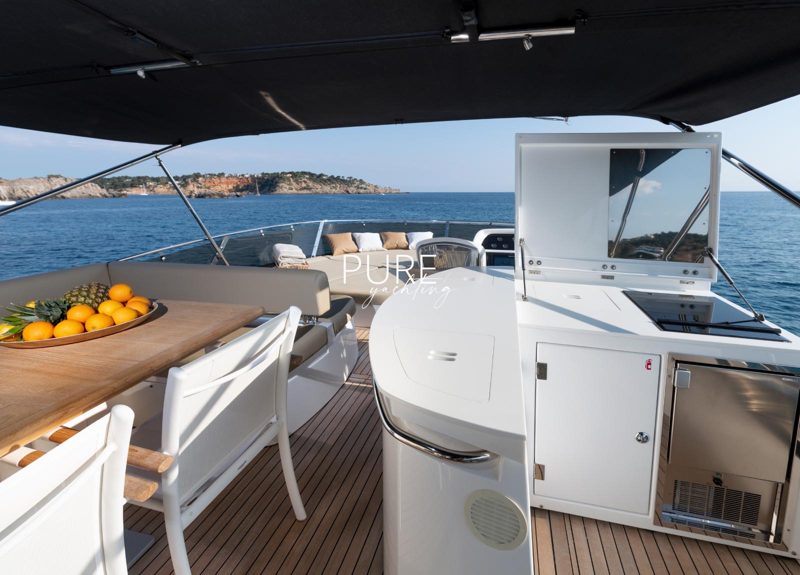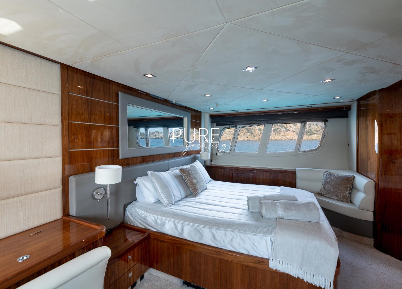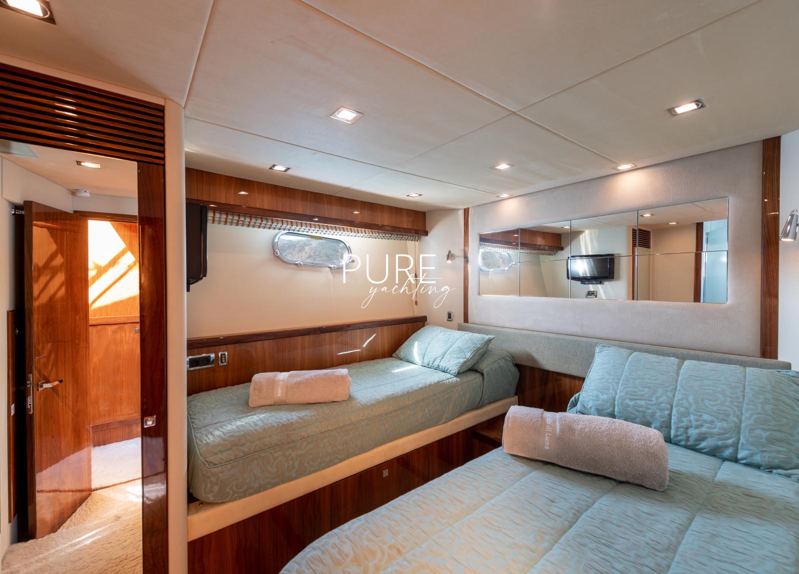 Die Manhattan 70 „Cala Di Luna“ ist wohl eine der vielseitigsten Charteryachten auf den Balearen, dank der perfekten Fusion aus Geschwindigkeit, Komfort und Ausstattung. Die 22,3 m Sunseeker-Yacht aus dem Jahr 2010 wurde 2018 komplett überholt. Sie verfügt über 4 Kabinen mit Schlafmöglichkeiten für 8 Gäste und kann tagsüber bis zu 12 Gäste aufnehmen. Die Manhattan 70 verfügt über eine umfangreiche technische Ausstattung wie das Stabilisierungssystem und die hydraulische Badeplattform sowie eine Vielzahl von Wasserspielzeugen.